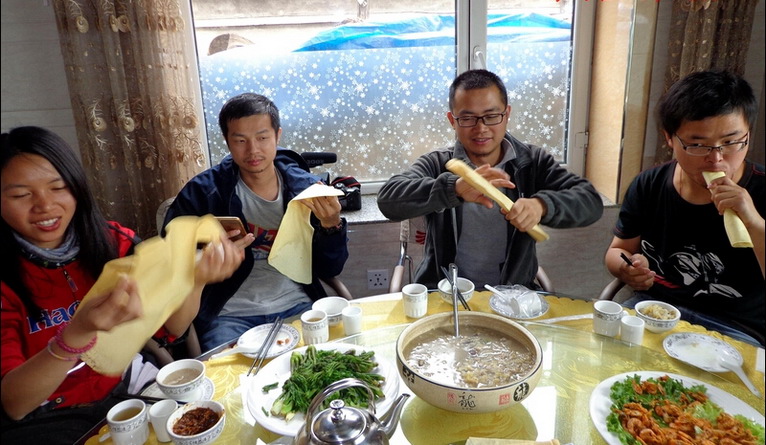 中餐的時(shí)候,石頭的一位好哥們請我們整個(gè)隊(duì)伍吃飯,我們到了本地一個(gè)酒店里吃飯,飯菜好豐盛!超級給力!!!