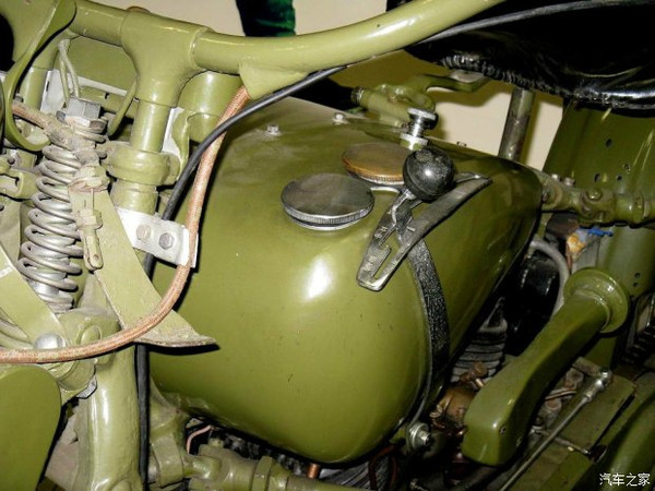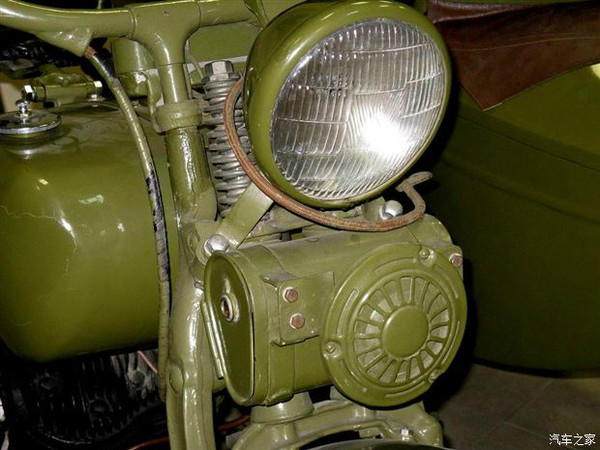 前照燈可安裝防空燈罩,提升自身安全。前照燈下是一只電喇叭,在必要的時(shí)候還可以作為防空警報(bào)發(fā)生器。在前照燈后的前車(chē)架安裝了起到緩沖作用的雙螺旋減震彈簧。