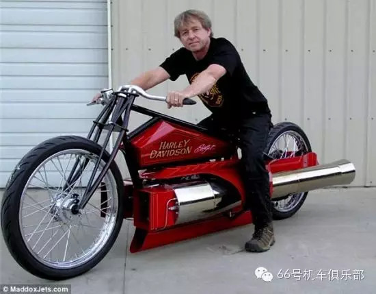 核心提示:美國業(yè)余機械師羅伯特-馬多克斯自制了一輛噴氣推進摩托車,時速可超過200英里(約合每小時321公里)。這輛車名為SportJet。他把一