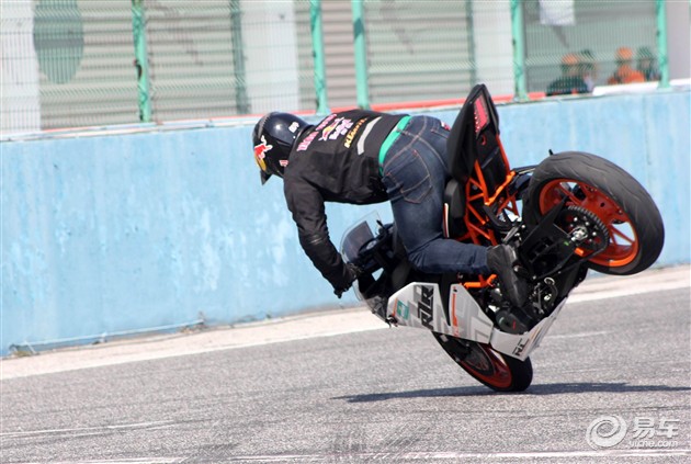 所以RC390預(yù)留ABS關(guān)閉按鈕的唯一理由就是:讓喜好玩特技的人能夠翹起車(chē)尾。比如KTM在中國(guó)的御用特技車(chē)手胡海在表演時(shí)做的那樣。