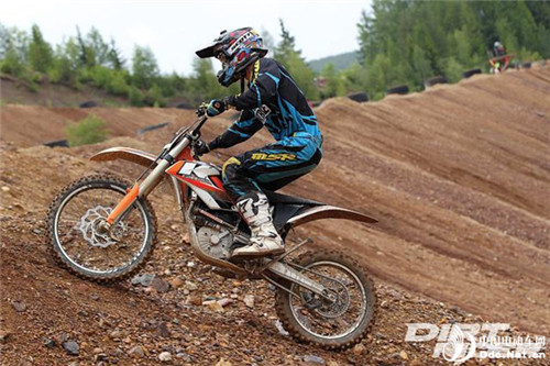 當(dāng)你跨上freeridee時(shí),你完完全全能感受到各個(gè)部件配合得天衣無(wú)縫的感覺(jué)。盡管它的動(dòng)力裝置與傳統(tǒng)感覺(jué)不一樣,但它的鋼鋁結(jié)合的車(chē)架有著優(yōu)秀的人體工程學(xué),使得駕駛者騎乘姿勢(shì)非常棒。車(chē)輛座高為大約35英寸,所以感覺(jué)車(chē)子大小比較適中,相比一輛250cc四沖程摩托它更像一輛85cc的摩托。車(chē)把和腳踏位置合適,除了平坦的坐墊,它就像傳統(tǒng)的越野摩托一樣。非常有趣的是,ktm從胡薩博格借鑒了它高強(qiáng)度塑料副車(chē)架的技術(shù)。此外它使用了85sx的減震,因此它的209磅的車(chē)重操控也十分扎實(shí)。當(dāng)沖進(jìn)粗糙路面和從坡上往下沖時(shí),我注意到車(chē)輛穩(wěn)定性非常好,阻尼表現(xiàn)得非常優(yōu)秀。wppds對(duì)震動(dòng)過(guò)濾非常快速,使得你感覺(jué)沖擊似乎要小一些,但是它仍需要進(jìn)一步的調(diào)教,使得快速過(guò)彎沖擊較大時(shí)減震不至于壓縮太多。
