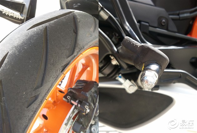 后制動反應(yīng)不如前制動那么好,剎車踏桿踩下去軟軟的,而且要踩下去一半才能有足夠調(diào)整剎車重心的力度。所以前后制動系統(tǒng)可能是RC390最值得買完車簡單升級一下的地方。
