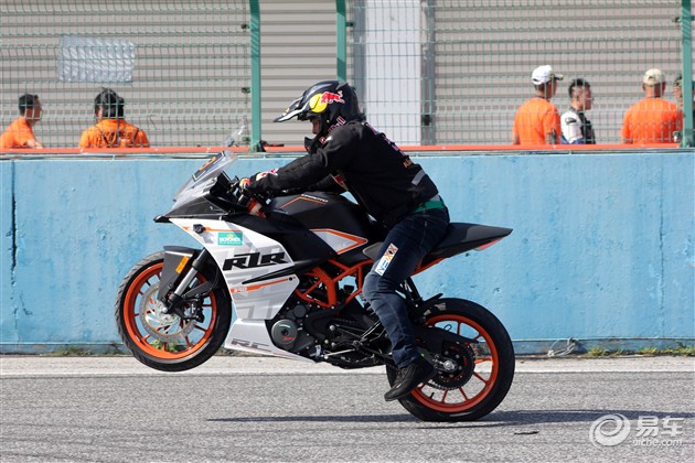 所以RC390預(yù)留ABS關(guān)閉按鈕的唯一理由就是:讓喜好玩特技的人能夠翹起車尾。比如KTM在中國的御用特技車手胡海在表演時做的那樣。