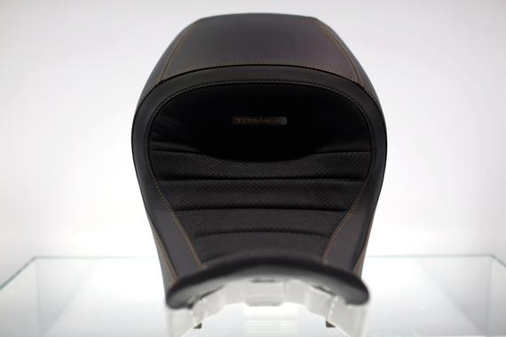 這一款限量版車(chē)型的細(xì)節(jié)處處均透露著設(shè)計(jì)者的獨(dú)到匠心。Diavel Titanium魔鬼鈦合金的油箱蓋經(jīng)過(guò)玻璃噴砂處理、鐳射切割工藝之后,由專業(yè)技師精工拋光。手工縫制的座椅更顯Diavel Titanium魔鬼鈦合金版的獨(dú)特,歐締蘭(Alcantara®)材料裝飾,不但乘坐感極其舒適同時(shí)體現(xiàn)了尊貴的設(shè)計(jì)理念。同為意大利品牌的歐締蘭(Alcantara®)已成為世界各大知名汽車(chē)制造商汽車(chē)內(nèi)飾的首選品牌,它之所以得到眾多高端車(chē)輛品牌廠商的青睞,得益于其非凡的多功能性和意大利制造的高端奢華之感,這一材質(zhì)可應(yīng)用于眾多領(lǐng)域,不論是家居裝飾、時(shí)裝配飾,還是消費(fèi)電子、航海航天,都可以見(jiàn)到用歐締蘭材料裝飾的產(chǎn)品。排氣管則利用高端Zircotech黑色陶瓷涂層。加大的58mm排氣口,2-1-2的排氣布局終端使用弦切面設(shè)計(jì),貼合后輪轂的半徑,更顯其訂制特征。