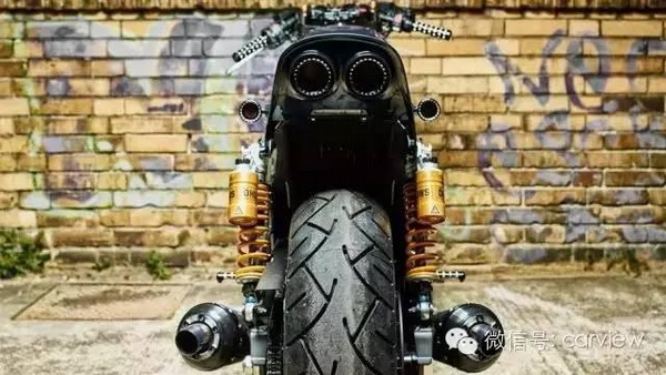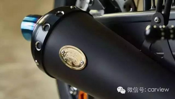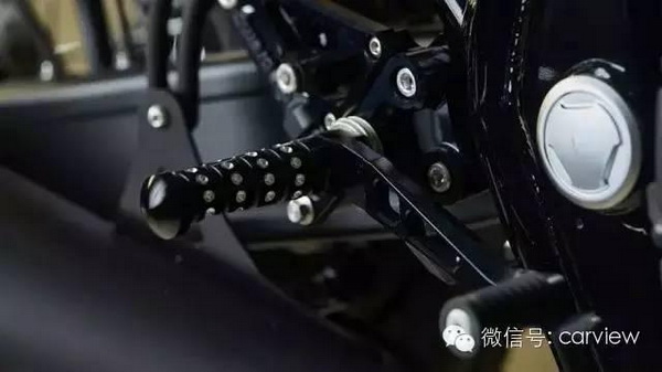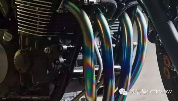 手工制作油箱;座椅選用了品牌獨(dú)特的21oz丹寧布,采用了純銀鉚釘固定;定制雙不銹鋼消聲器;4缸雙頂置凸輪軸,1250cc風(fēng)冷發(fā)動(dòng)機(jī),提供98hp的輸出功率和108Nm的扭矩。