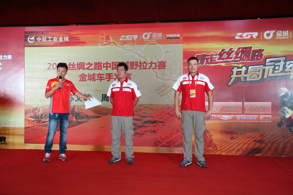 8月29日,以“同走絲綢路,共圓冠軍夢”為主題的中國金城車隊征戰(zhàn)2015絲綢之路中國越野拉力賽出征儀式在西安舉行。中航工業(yè)金城集團(tuán)有限公司正式宣布:中國金城車隊將第三次征戰(zhàn)中國越野拉力賽。國家體育總局汽摩運動管理中心主任詹郭軍,金城集團(tuán)有限公司董事長、總經(jīng)理李曉義,副總經(jīng)理田愛軍;金城車隊的戰(zhàn)略合作伙伴代表、南京中航工業(yè)科技城發(fā)展有限公司總經(jīng)理譚偉光、南京金龍蟠房地產(chǎn)投資管理有限公司副總經(jīng)理楊華、江蘇萬馳國際賽車場董事長劉振和來自中航工業(yè)宏光空降裝備有限公司、北京杰普特商貿(mào)有限責(zé)任公司、摩托吧等代表;金城摩托車的經(jīng)銷商代表、摩托車車迷朋友,金城車隊全體成員,以及中央電視臺、新浪、中國航空報、新華社、人民網(wǎng)、新華網(wǎng)、摩托吧、摩托車信息、摩托財智及南京日報等眾多媒體見證了這一激動人心的時刻。