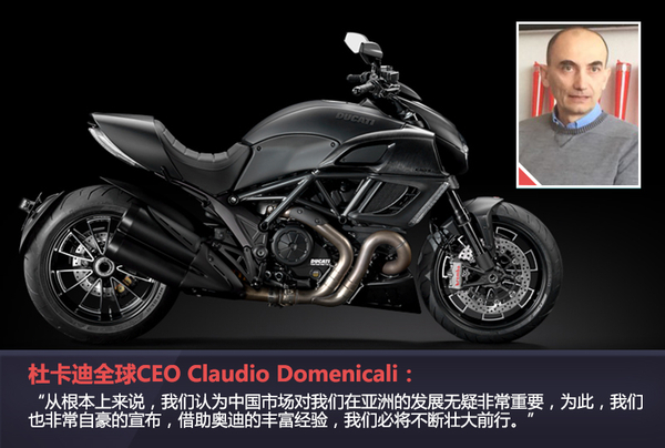 2015年我國汽車行業(yè)步入了低谷,各家車企的年銷目標都面臨達不到的尷尬境遇,和汽車市場類似,受到汽車降價和部分城市禁摩的沖擊,2014年我國摩托車產(chǎn)銷量分別為2126.78萬輛和2129.44萬輛,同比也有所下降,不過摩托車市場潛力非常大。杜卡迪作為摩托車市場中的領導品牌,越來越注重中國市場的拓展和開發(fā),網(wǎng)通社在對杜卡迪全球CEO Claudio Domenicali先生對網(wǎng)通社表示,明年年中起,中國部分地區(qū)取得資質的奧迪經(jīng)銷商可以銷售杜卡迪摩托車。此舉表明杜卡迪有意借奧迪完善的經(jīng)銷商體系來方面自己擴大市場,在品牌建設方面發(fā)力。