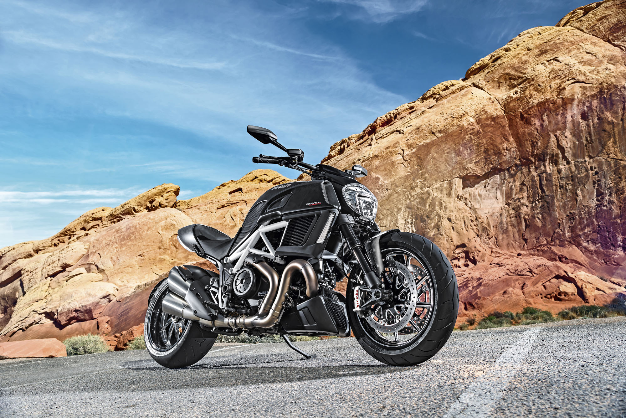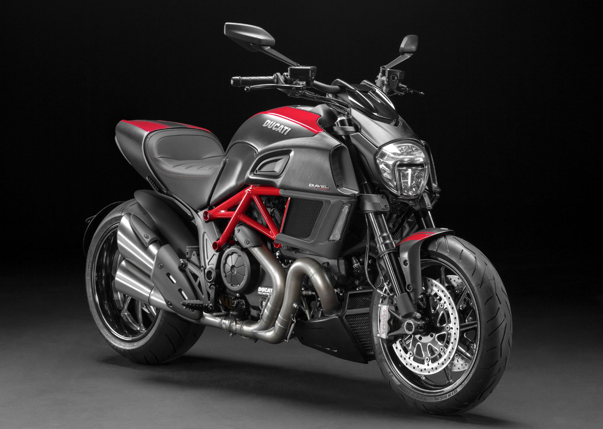 杜卡迪早前發(fā)布了新的 2016' Diavel Carbon 大魔鬼碳纖版。新的大魔鬼碳纖版沿用了原有的 V 型兩汽缸 Testastretta 11° DS(雙火花塞)發(fā)動(dòng)機(jī),最大馬力輸出 162 匹,主要的配置與現(xiàn)行銷售中的 2015' 版本相同。