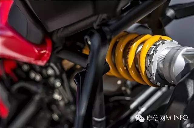后減震 Öhlins 彈簧預載 壓縮和回彈阻尼可調(diào),行程16cm.