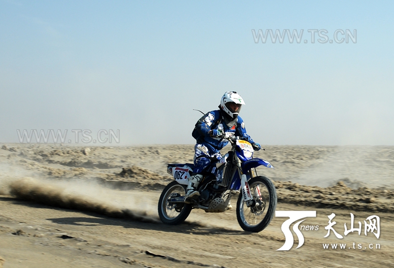 核心提示:天山網(wǎng)全媒體車(chē)隊(duì)車(chē)手肖斌在賽道中疾馳。天山網(wǎng)吐魯番訊(記者朱翊攝影報(bào)道)10月19日,第十屆環(huán)艾丁湖摩托車(chē)?yán)惻e行第一賽段