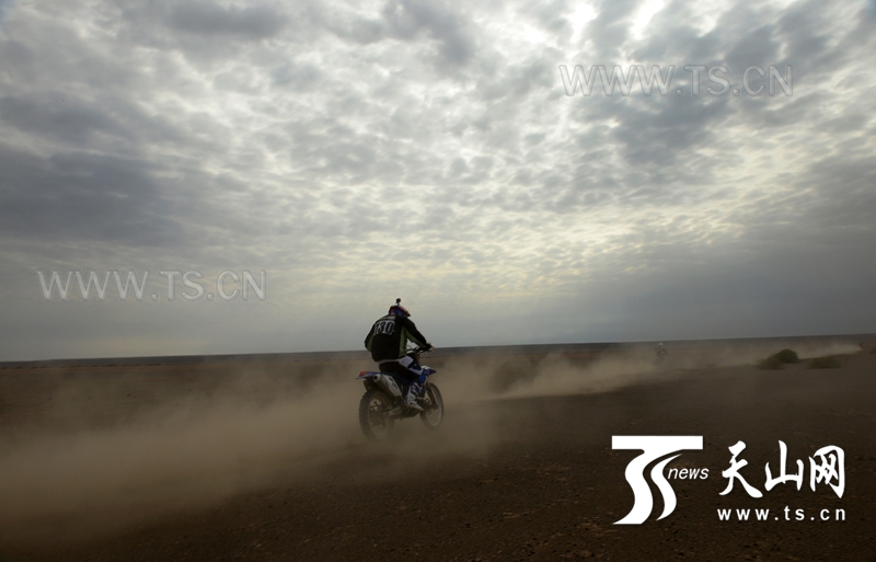 SS3賽段車(chē)手在戈壁灘上急速駛過(guò)。