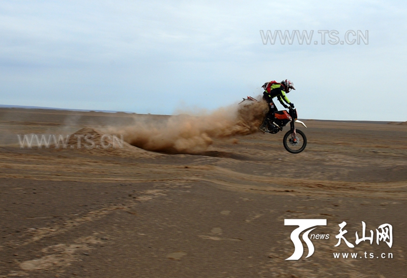 核心提示:環(huán)艾丁湖拉力賽SS3賽段,車(chē)手在通過(guò)一個(gè)小土包時(shí)險(xiǎn)些摔倒。天山網(wǎng)鄯善訊(記者王瑋 朱翊攝影報(bào)道)2015中國(guó)吐魯番第十屆環(huán)艾丁湖