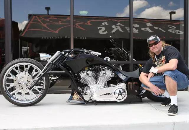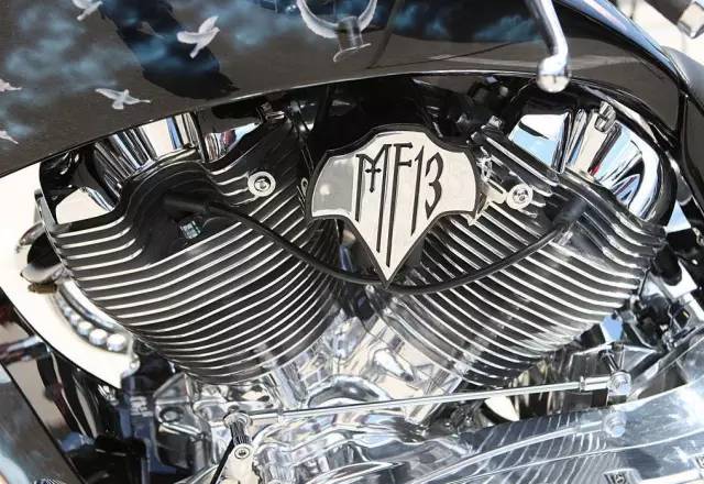 拋開魔術(shù),克里斯還是一位狂熱的定制機車愛好者,聯(lián)手大熊廠家Big Bear Choppers定制了這款充滿魔幻元素的大熊機車MF13,作為大熊機車的創(chuàng)辦人&主理人凱文阿爾索普充分了解了克里斯的需求后開始設(shè)計每一個細節(jié)。