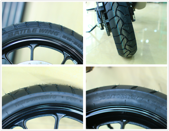 19寸前輪、17寸后輪十輻式鋁輪轂,出廠裝配普利司通戰(zhàn)翼BW-502輪胎。前輪胎規(guī)格為110/70-17,后輪胎規(guī)格為150/70-17。原廠輪胎在公路上的抓地性能尚佳,但在沙土、泥濘路面真是“只見轉(zhuǎn)速不見速度”;而在運動駕駛當(dāng)車體傾角達到約30度左右時,因輪胎觸地弧度問題會導(dǎo)致操控段落感。大培子本人只關(guān)注輪胎的性能以及用途,對寬窄......