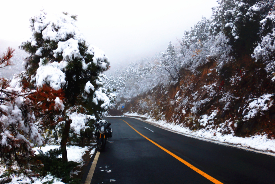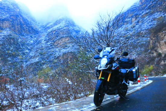 大培子為測試V-Strom 1000牽引力控制系統(tǒng)的實際效能,在地表已形成地穿甲(薄冰)的情況下“冒死”選擇雪后進山壓彎。起初以60公里/小時速度過彎,車輛仍可以保證穩(wěn)定狀態(tài)(STCS工作指示燈頻繁閃動),而后關(guān)閉了牽引力控制(真不是因為技高人膽大而是出現(xiàn)了不咗不會死的心理反應(yīng)),車輛立即因打滑而完全失控,因為運氣好才使得人車毫發(fā)無傷,請騎士們千萬不要效仿以上行為。