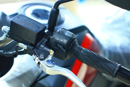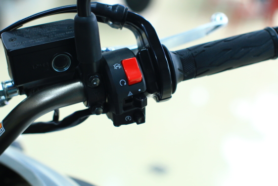 初次駕駛2014款V-Strom 1000居然沒有找到遠光燈開關(guān)!大培子的下巴立馬掉到油箱上,原來遠光燈開關(guān)被超車燈開關(guān)整合,按下為超車燈警示抬起為遠光燈照明,此設(shè)計不失為一個非常方便、貼心的人性化設(shè)計。