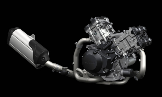 以2002款V-Strom 1000四氣門DOHC九十度V型雙缸發(fā)動機為原型,活塞直徑由98mm增大到100mm,排氣量也由996cc增大到1037cc。來自發(fā)動機的革新可遠遠不止一項簡單“擴容”,氣缸,氣缸蓋、活塞、活塞環(huán)、活塞銷、連桿、曲軸、曲軸箱、磁電機、飛輪、傳動、雙火花塞并配置離合器輔助等諸多革新改進,可以講2014款V-Strom 1000搭載的是一款近乎于全新設(shè)計的發(fā)動機。10孔噴油嘴替代4孔噴油嘴,ECU等供油系統(tǒng)進行全新匹配,最大功率73kW/8000轉(zhuǎn),最大扭矩103N.m/4000轉(zhuǎn),2014款V-Strom 1000增大動力輸出的同時降低了相對轉(zhuǎn)速,中低轉(zhuǎn)速扭力輸出更加強勁。