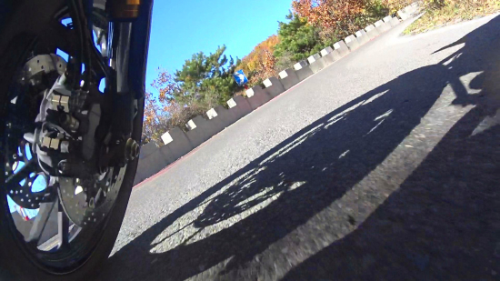 大培子在壓彎時經(jīng)常會磨到腳踏探針(特意用Gopro拍攝的行進特寫),正所謂有得就有失,畢竟V-Strom 1000不是一款為彎道而生的跑車。駕駛V-Strom 1000進行長途摩旅是一件非常愜意事情,輕松又爽快!唯一的不爽來自20L的油箱容積,顯得有點寒酸,實測續(xù)航里程230-250公里倒也算夠用。