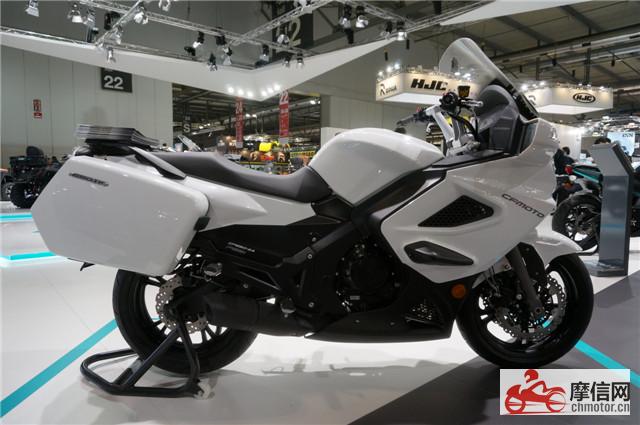 一如既往的淡蘭色LOGO,莊重典雅又不失激情,而在這背后,正是擁有一流的研發(fā)水平與過(guò)硬的產(chǎn)品品質(zhì),才鑄就春風(fēng)今日的輝煌成績(jī)。此次展會(huì),春風(fēng)帶來(lái)了旗下主流車型,包括650TK、650NK、150NK等深受市場(chǎng)追捧的產(chǎn)品,值得注意的是神秘車型——650NK TT的登場(chǎng)亮相,這款脫胎于春風(fēng)650NK的改裝車型,全面優(yōu)化提升整流罩、前叉、后減震、輪胎以及發(fā)動(dòng)機(jī)等細(xì)節(jié),并參與了全球最危險(xiǎn)的曼島TT賽事,雖然是一次巨大考驗(yàn),但650NK TT憑借動(dòng)力性能上的突出優(yōu)勢(shì),依然捍衛(wèi)了自身榮譽(yù)。