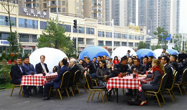 開業(yè)儀式結(jié)束后,到場的寶馬和其他機車車隊進行了龍泉山騎行發(fā)車儀式,壯觀的騎行隊伍浩浩蕩蕩開往龍泉山,留在店內(nèi)的客人愉快地享用了豐盛的美食。