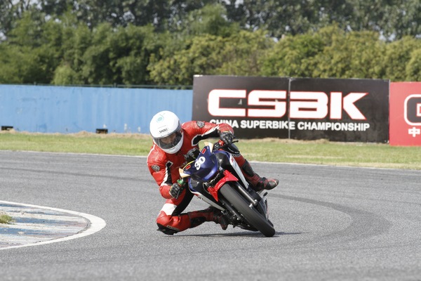 感謝徐家地板世釗車隊。這是我們第一次參加CSBK的比賽就拿到這個成績,所以我們很開心。還要感謝香港的萬里達車行,雅馬哈幫了我很多,所以才能在這個賽事中走下去。今天的比賽我起步比較好,所以一開始還可以跑在李鵬宇前面。跑了十多圈之后我的體力不是很好,就被他追上,最后我也沒辦法再超越他。謝謝。