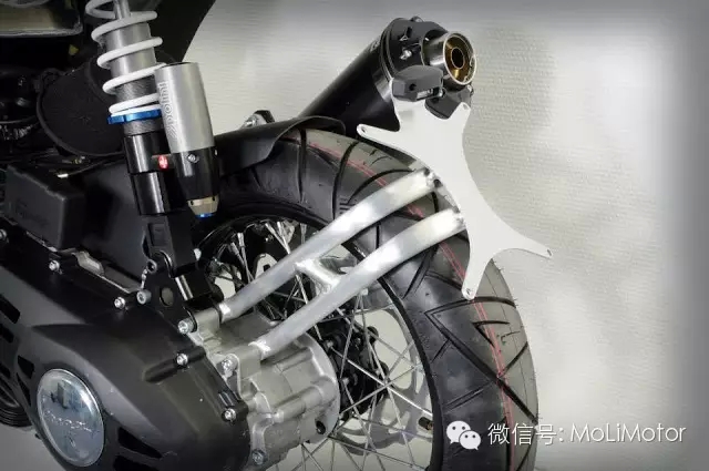 在操控性能上POLINI MOTORI 更換可調(diào)式前后避震,前制動碟盤加大到260mm、單向雙活塞卡鉗,后煞車部分則是把原本鼓式煞車改成碟式煞車,使用240mm 碟盤與單向單活塞卡鉗,擁有更好的制動效果。輪框更換成14吋鋼絲框,不只增加復(fù)古感也增加頃角。車體強(qiáng)化結(jié)構(gòu)優(yōu)化了車身的剛性。