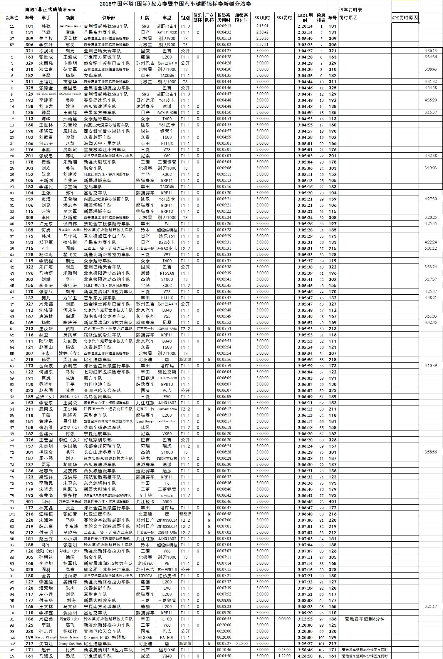 第一賽段汽車組排名如下(點擊看大圖):