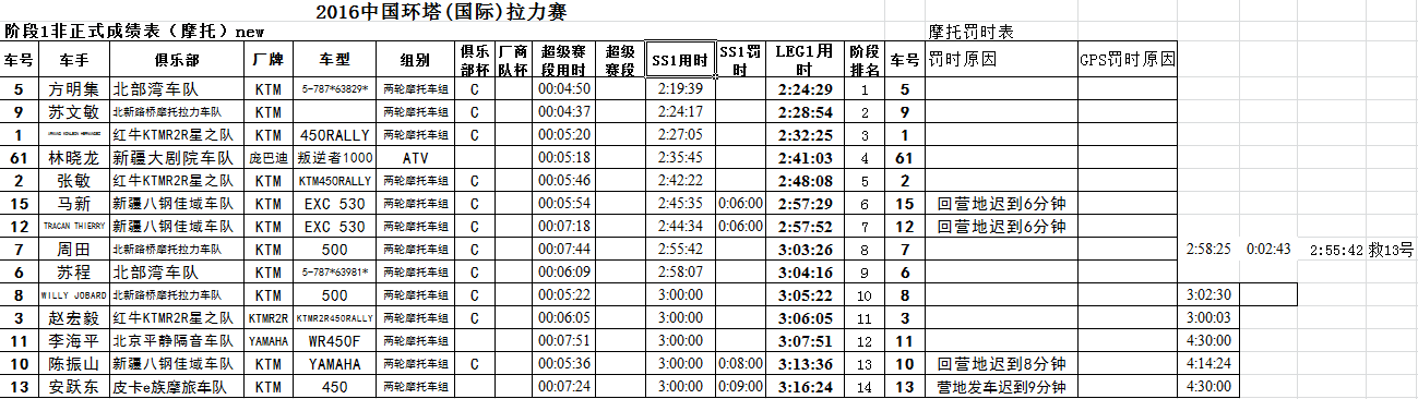 第一賽段摩托車組排名如下(點擊看大圖):