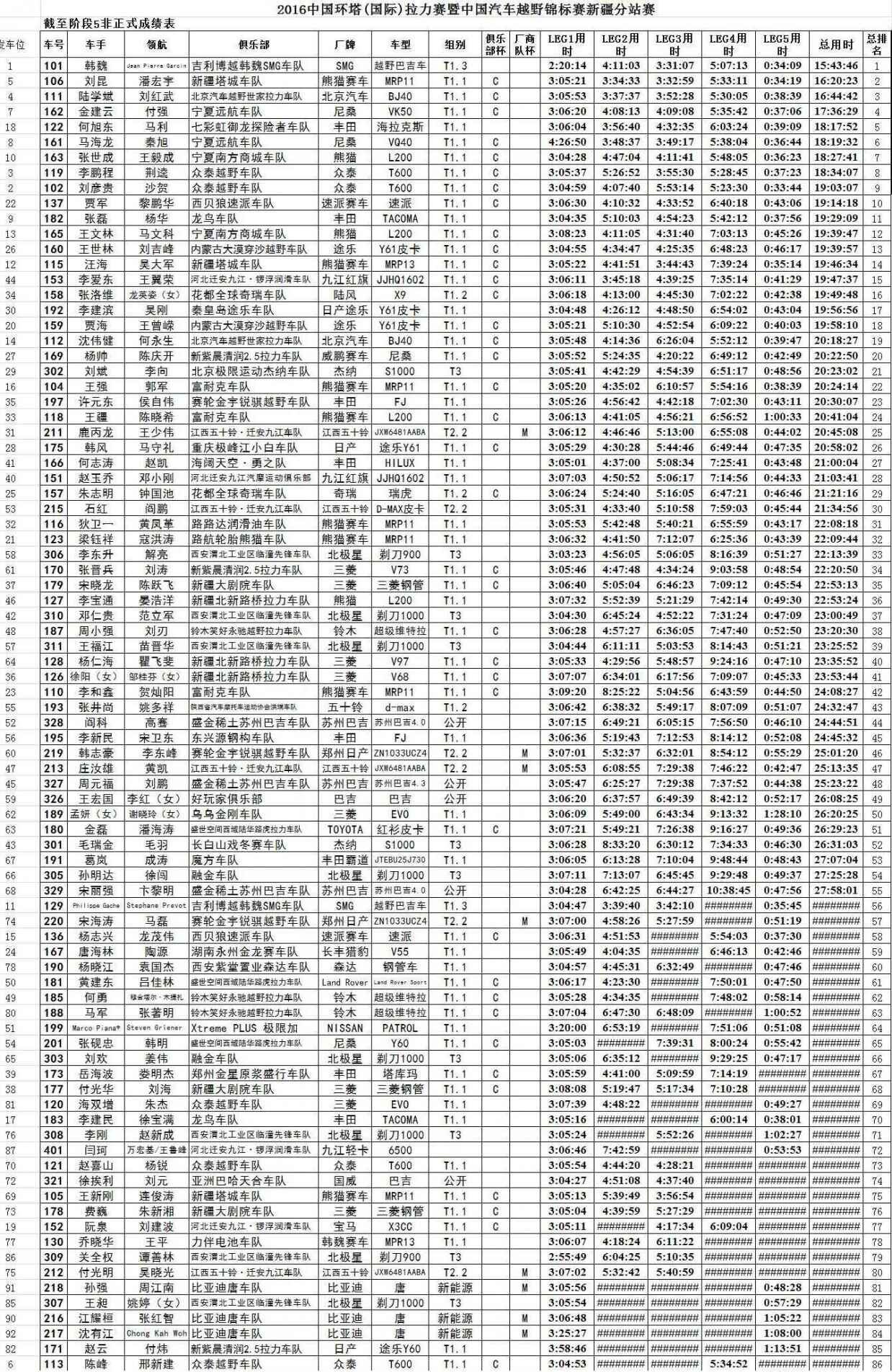 第五賽段汽車組成績(jī)排名如下(點(diǎn)擊看大圖):