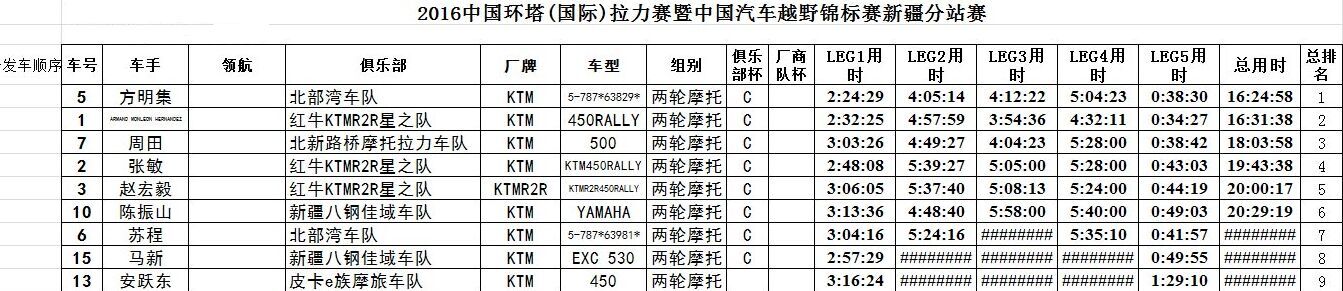 前五賽摩托車組總成績(jī)排名如下(點(diǎn)擊看大圖):