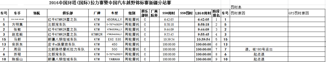 前八賽段摩托車組成績總排名如下(點擊看大圖):
