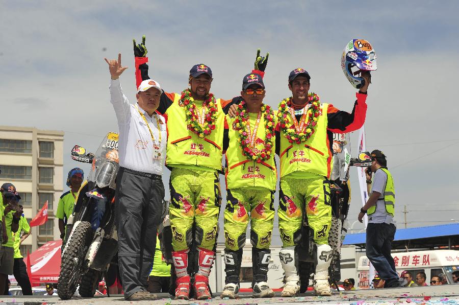 來(lái)自浙江的越野車手、上屆環(huán)塔拉力賽冠軍韓魏以領(lǐng)先第二名4個(gè)多小時(shí)的優(yōu)勢(shì)蟬聯(lián)了全場(chǎng)冠軍和汽車組冠軍;2016年達(dá)喀爾拉力賽摩托車組第十名、西班牙車手阿曼德·赫爾南德斯同樣以領(lǐng)先上屆環(huán)塔摩托車組冠軍、廣西車手方明集近4小時(shí)的成績(jī),奪得個(gè)人首個(gè)環(huán)塔摩托車組冠軍。