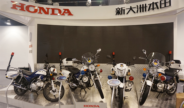 新大洲本田摩托有限公司攜CBR300R、CBF190R、戰(zhàn)神150、戰(zhàn)豹150等共9款全副安裝警具的警用摩托車高調(diào)參展,新大洲本田也是500余家中外最新警用裝備產(chǎn)品參展商唯一的摩托車生產(chǎn)企業(yè)參展商!