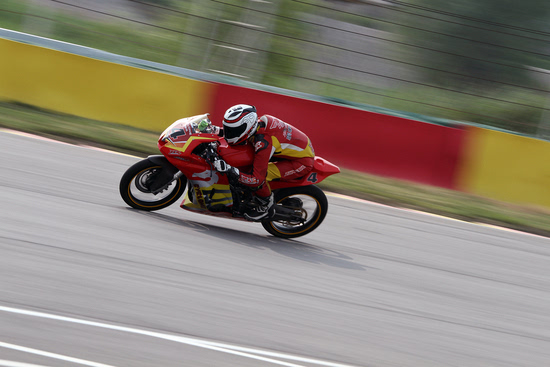 參加廠商杯國產(chǎn)250CC公開組比賽的是老將何智鋒、臺(tái)灣美女冠軍劉君眉和歐陽豪,他們均使用的賽科龍RC3冠軍版的賽車,這是已經(jīng)過兩年全國公路摩托車錦標(biāo)賽的錘煉,并助車隊(duì)連續(xù)兩年包攬總冠軍的戰(zhàn)騎。今年,車隊(duì)又重新開發(fā)了鋁合金的后平叉,通過結(jié)構(gòu)的改善,使用不同的材料,新的后平叉比老款輕了約2KG,加強(qiáng)了后平叉的剛性,降低了整車的重心,進(jìn)一步提升了賽車高速過彎的穩(wěn)定性。而VANHOOL新款的排氣管、法斯特新款前后減震、MFZ剎車系統(tǒng)也得到了改進(jìn),再加上全新雙電噴系統(tǒng)的運(yùn)用,使整個(gè)賽車的動(dòng)力、操控都得到了明顯的提高。成績(jī)就能夠說明一切,何智鋒駕駛59號(hào)RC3在上午的自由練習(xí)賽中,以1分15秒808的最快單圈成績(jī)排在第一位。下午進(jìn)行的排位賽,他進(jìn)一步提高了自己的成績(jī),取得1分15秒700的最快單圈成績(jī),排在所有250CC組的第一位。他的隊(duì)友劉君眉首次來金港賽道比賽,還在熟悉賽道的過程中,在上午的自由練習(xí)賽她僅排在第9位,但是,下午的排位賽,她把單圈成績(jī)提高了2秒多,排名也從上升到了第4位。小將羅焌榤的進(jìn)步非凡明顯,他排在改裝250CC公開組第2位、也是整個(gè)250CC組的第6名。