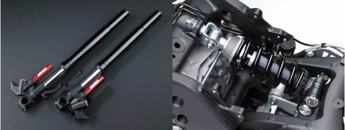 前懸掛使用Showa在WSBK賽事中開發(fā)的BFFF(Balance Free Front Fork)前叉,這組前叉有著如同Ohlins FGR系列一樣的外置氣瓶,透過外置氣瓶的氮?dú)?,確保阻尼的一致性。而壓縮與回彈阻尼的機(jī)構(gòu)設(shè)計(jì),在調(diào)整阻尼時(shí)不會(huì)相互干擾,能穩(wěn)定的獨(dú)立設(shè)定。后懸掛與前一代一樣使用Showa的BFRC Lite,是舊款BFRC 的輕量化版本,同樣具備獨(dú)立的壓縮與回彈阻尼調(diào)整機(jī)能。