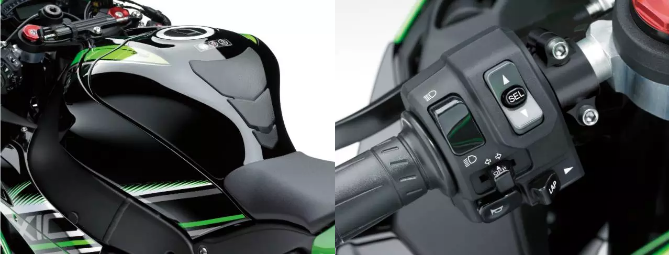 分別為Full、Middle與Low,F(xiàn)ull為全馬力模式,與其他車款一樣, 在Low 模式時(shí),動(dòng)力為Full 模式的60%。比較特別的是它的Middle模式, Middle模式的動(dòng)力取決于油門開度,當(dāng)騎士油門開度在一半以下的時(shí)候, ZX-10R提供的動(dòng)力等同于Low 模式,但開度在50%以上時(shí)則與Full相同,也就是說,在一般道路使用時(shí)Middle模式能讓你更容易控制油門,遇到大直道想小飆一下,ZX-10R也不用像其他車款必須切回Full模式,現(xiàn)在你只要大擰油門,ZX-10R一樣能夠提供全動(dòng)力輸出,這相當(dāng)適合臨時(shí)需要?jiǎng)恿Φ尿T士使用。
