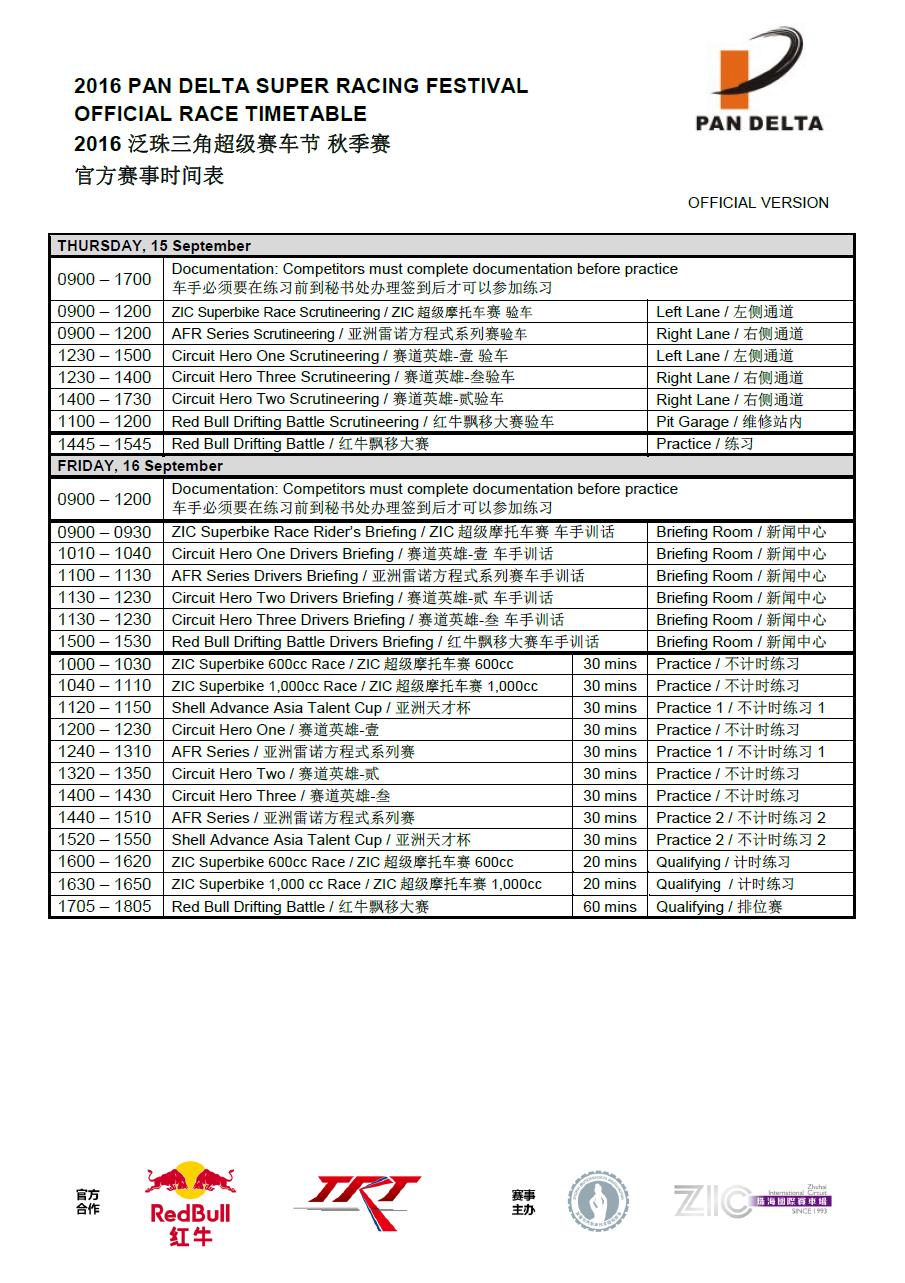 2016年泛珠三角超級(jí)賽車節(jié)(秋季賽)官方賽事時(shí)間表