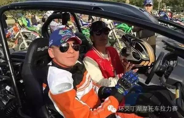 2015年第十屆環(huán)艾丁湖摩托車(chē)?yán)惏l(fā)車(chē)儀式中,歌手帕爾哈提身著拉力賽服飾賽車(chē)服參加。