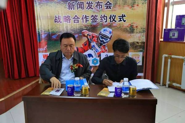2016環(huán)艾丁湖(國際)摩托車?yán)愋侣劙l(fā)布會于9月29日在自治區(qū)體育局體訓(xùn)二大隊隆重舉辦。在發(fā)布會現(xiàn)場,曼立多餐飲管理有限公司代表與環(huán)艾丁湖摩托車?yán)愘愂陆M委會簽訂戰(zhàn)略合作伙伴協(xié)議,并向愛行聯(lián)盟公益行捐贈資助款項。