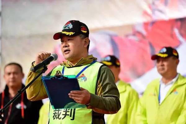 自治區(qū)體育局局長祖龍·克里木宣布發(fā)車儀式開始,并為首輛賽車發(fā)車。