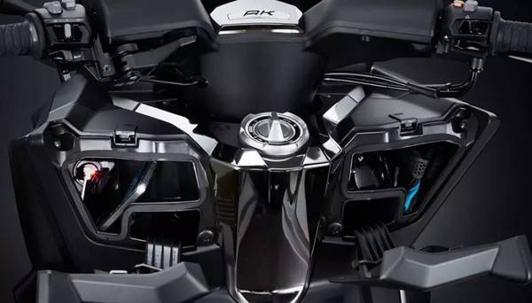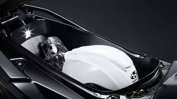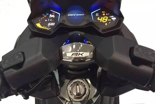 其它方面,這輛全新的AK 550有兩種動(dòng)力模式,全馬力(FULL POWER)模式和濕地(RAIN)模式。全車有豐富的儲(chǔ)物空間,不僅車把下有儲(chǔ)物空間,設(shè)有點(diǎn)煙器,同時(shí)車座下可放下一定全盔和半盔,并配有LED燈。