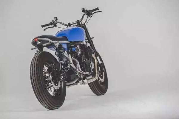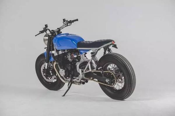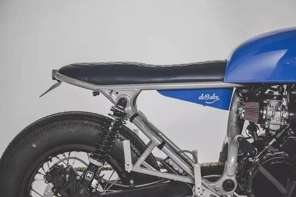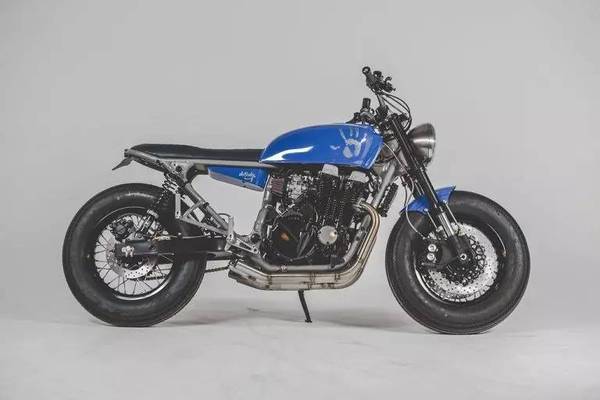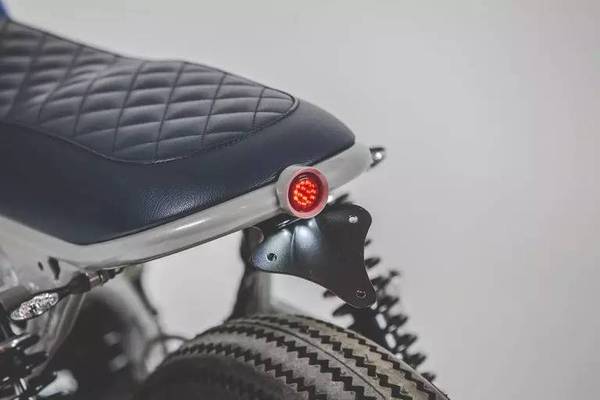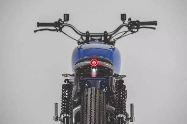 這款改裝作品的亮點是顏色和細節(jié),DeBolex很擅長利用藍顏色,之前的改裝作品也用到過這種藍,而這款YKB-CB750依舊用到了這種藍,雖然是復古風格,但這種鈷藍的配色為這輛車增加了一些活力。個人感覺最點睛的就是郵箱上的大手印,一邊一個,個性化十足。而細節(jié)方面,諸如復古的儀表,前擋泥板的連接,車座與油箱的銜接以及后尾燈的設計,都很有味道。