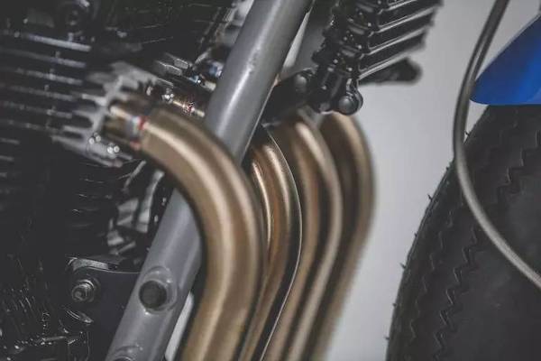 四缸是CB750的特點,所以排氣的變化就更加豐富,這款YKB-CB750的排氣很討巧,整個排氣造型跟隨車架走線,不破壞整體造型,同時從后面看也能看到尾部的變化。同時車座下方故意的留空以及弱化后減震也是和前部豐滿的發(fā)動機進行對比,整個設計手法簡單明確。