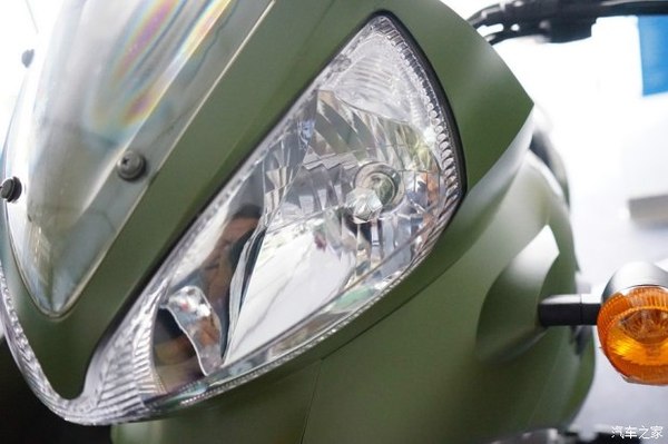 上圖JH600BJ的左前燈特寫,內(nèi)置反光板、鹵素(H7)燈泡照明,與汽車車用燈泡通用。