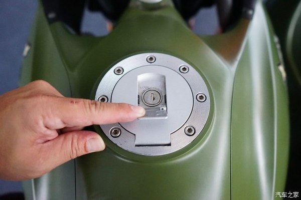 上圖是JH600BJ由6條“內(nèi)六方”螺栓固定的油箱蓋安全鎖特寫。雖然JH600BJ整車由鋼材質(zhì)構(gòu)成,但是燃油箱進(jìn)行了加固處理,具備防火防爆能力。鋁合金的油箱蓋與油箱固定截面也采用全密封處理。
