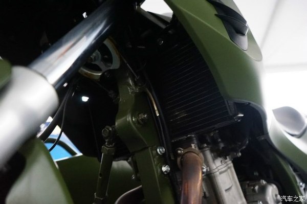 上圖是隱藏在油箱前部,兩側(cè)護(hù)板中央的散熱器。