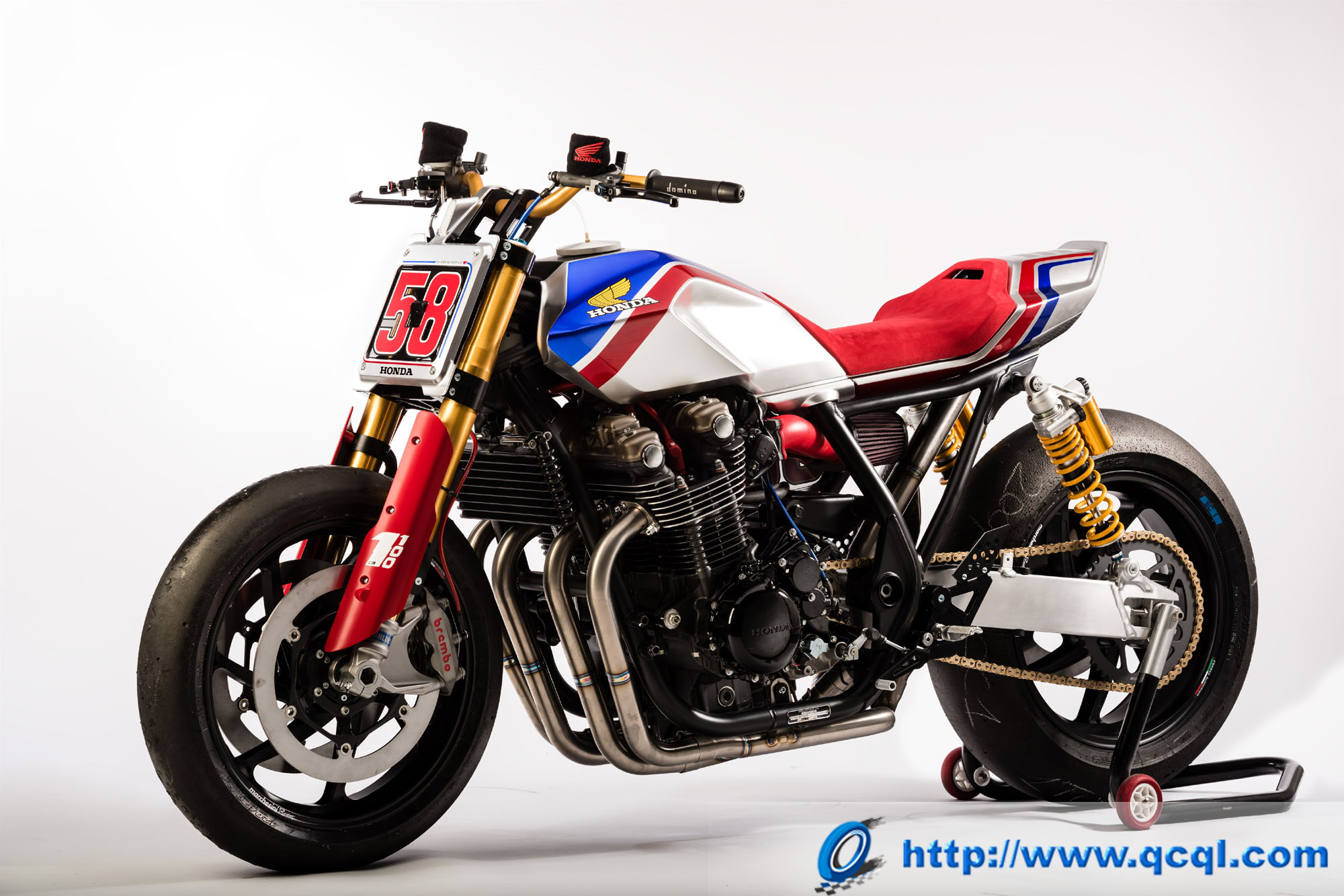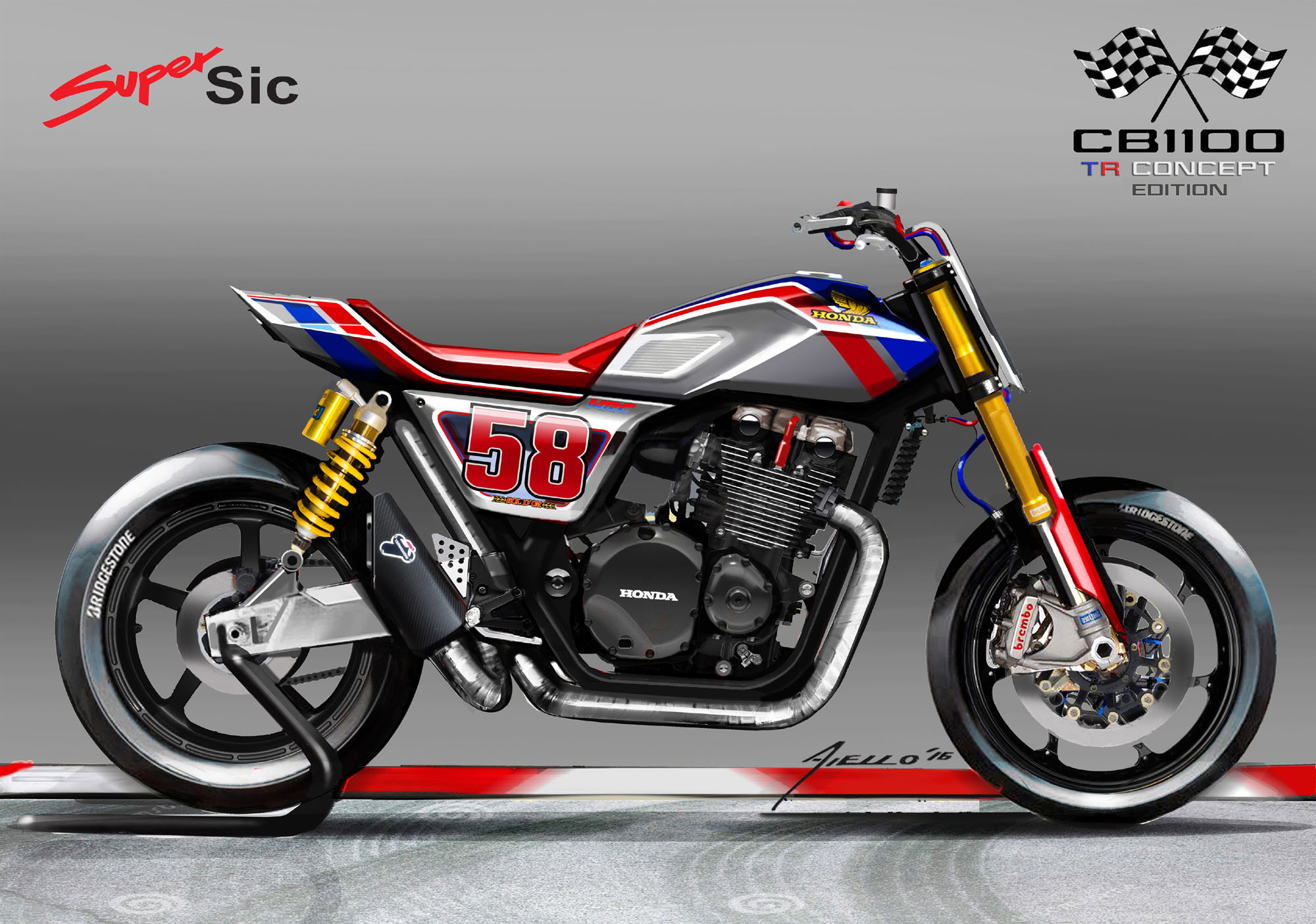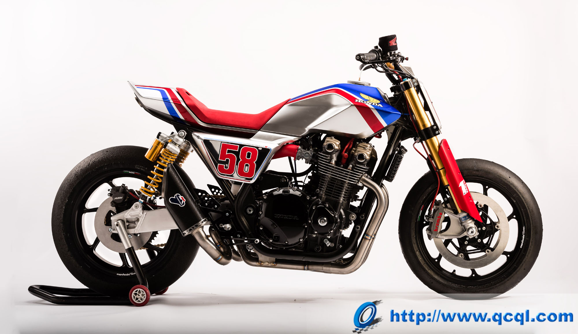 CB110TR 概念車由廠方位于意大利羅馬 R & D 部門的設(shè)計(jì)師負(fù)責(zé)開發(fā),它搭載一副風(fēng)/油冷的直列四汽缸發(fā)動機(jī),造型上采用了美國比較流行的泥地甩尾繞圈賽車(Flat Track)外觀,廠方也為其取了個(gè)名字叫做 “ 城市里的泥地繞圈賽之王 ”(King of Urban Flat Track Circuits)。而車身上的編號 58,則是為了紀(jì)念五年前因賽道上的意外而去世的意大利車手施蒙切尼(M. Simoncelli)。