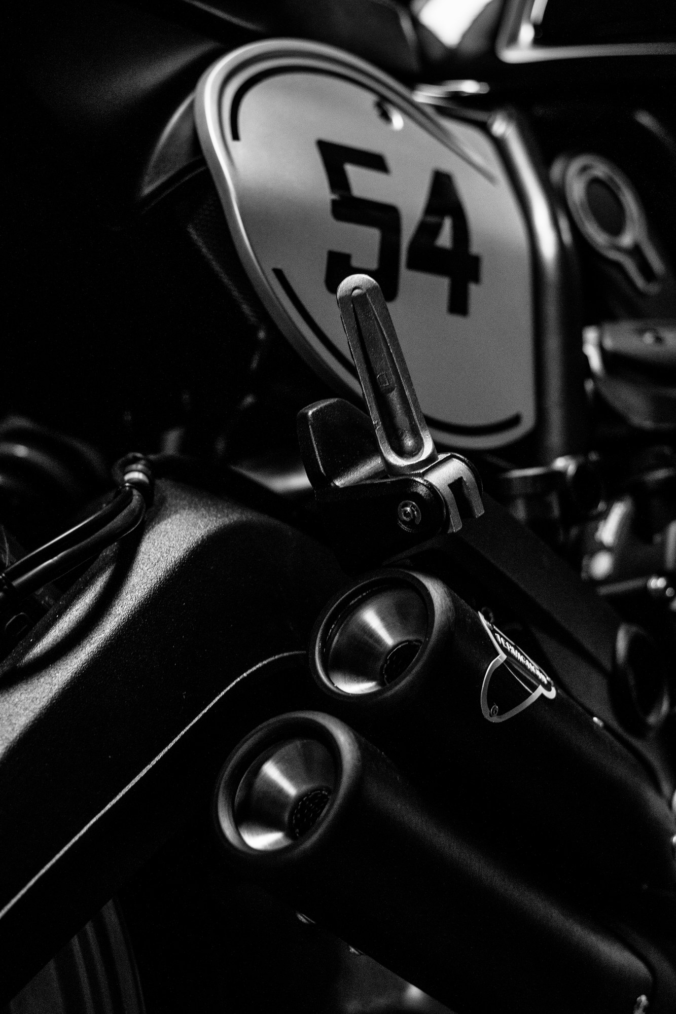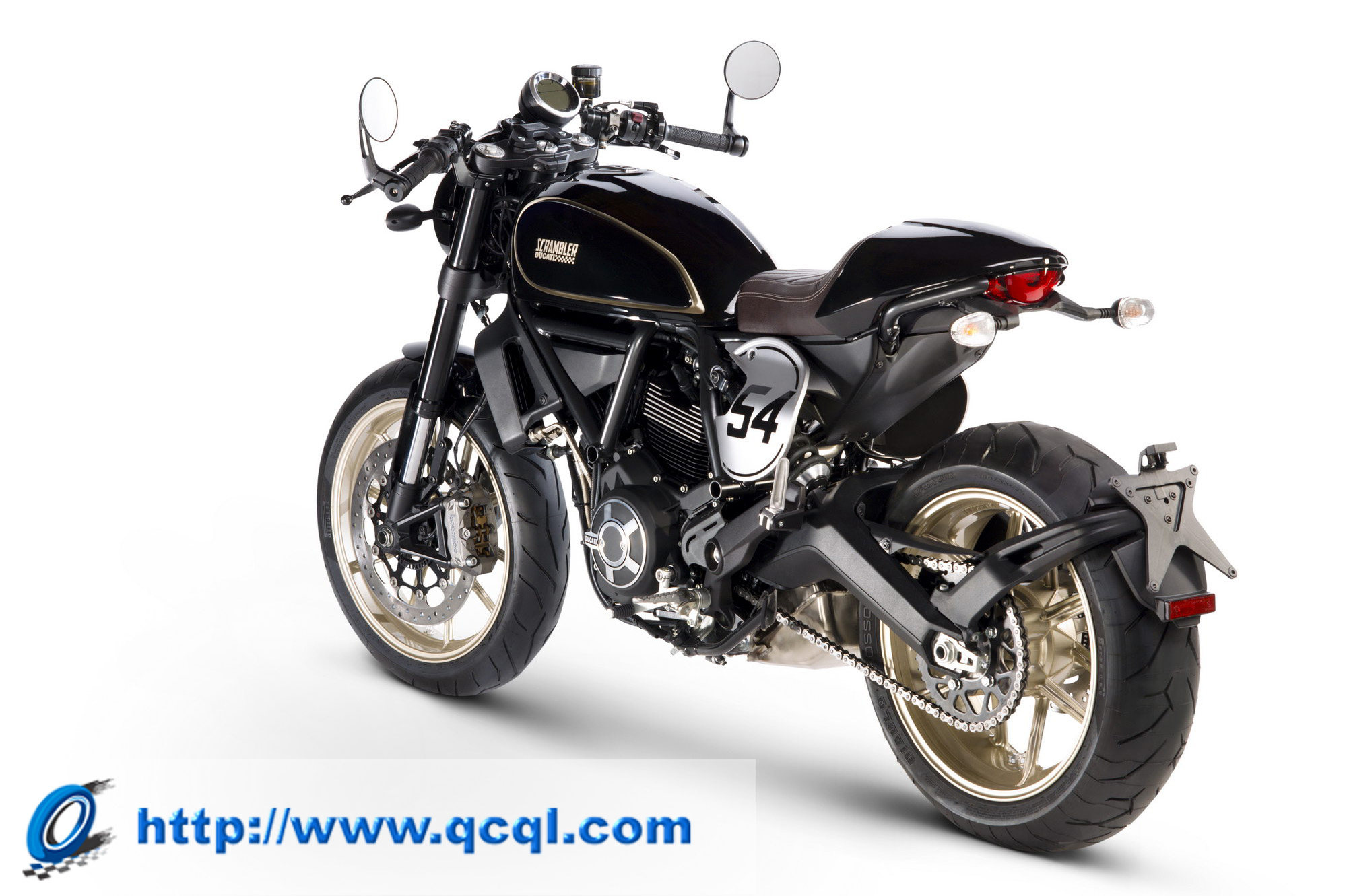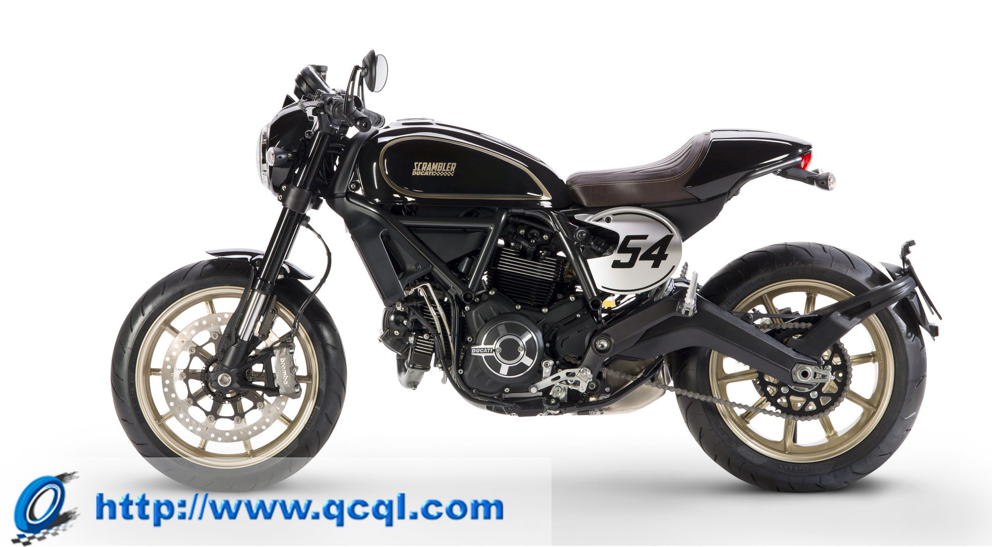 新的 “ 咖啡賽車 ” 搭載一副與 “ 自游 ” 同系列的風(fēng)冷兩沖程 L 型兩汽缸(V 型 90 度兩汽缸)的發(fā)動機,排汽量 803 cc,最大動力輸出 55 kw(75 匹),符合歐四排放標(biāo)準(zhǔn)。顧名思義,新的 “ 咖啡賽車 ” 采用了一個老式賽車風(fēng)格的外觀造型,黑色為主襯以金色的線條,編號 54 是為了向六十年代杜卡迪的車手 Bruno Spaggiari 致敬。鞍座的設(shè)計比之前的幾個版本要高(805 mm :790 mm),同時標(biāo)配了 Termignoni 的排汽管。