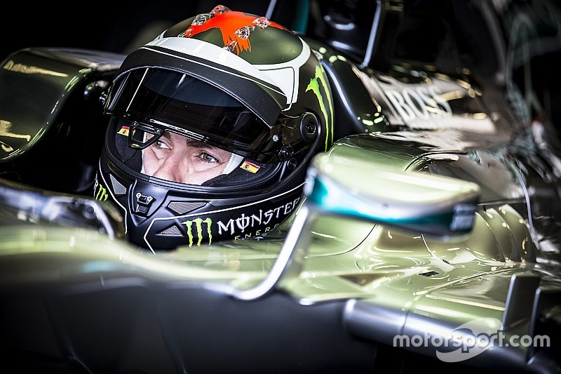 在其贊助商妖怪牌能量飲料的安排下,這位西班牙車手達(dá)成駕駛F1賽車的成就。在英國大獎賽舉辦地銀石賽道,洛倫佐試駕了劉易斯•漢密爾頓的梅賽德斯W05賽車,也正是駕駛著這輛賽車,英國車手奪得了當(dāng)年的車手總冠軍。