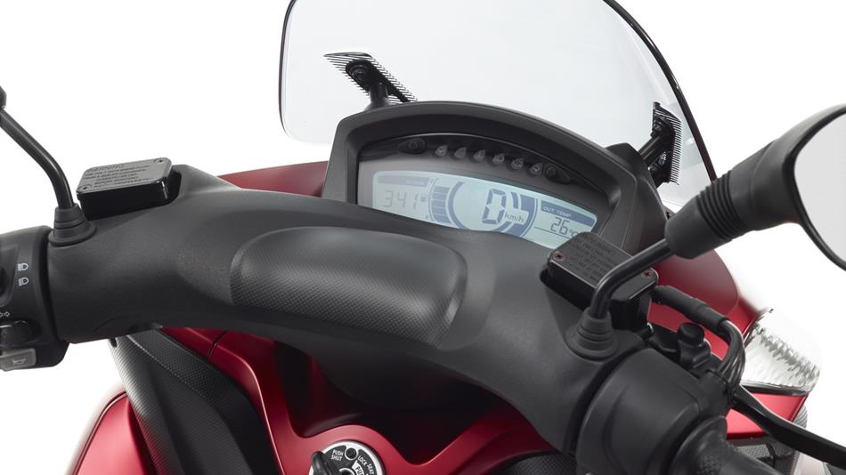 MW125 的最大特點,當(dāng)然就是其LMW 結(jié)構(gòu)的前兩輪可同時傾斜的設(shè)計,前懸掛采用了四條正立式的前叉,為城市的駕駛,提供獨特的舒適性、靈活性,讓城市的通勤(即上下班)者在面對不同的路況之下,依然有著充足的駕駛樂趣。此外,來源于MotoGP 技術(shù)/經(jīng)驗的中置式油箱設(shè)計,為車輛保持前后50:50 的配重作出了重要的支持。其他方面,使用了 UBS 前后聯(lián)動的碟式制動系統(tǒng),前14、后12英寸直徑的車輪,液晶儀表板,LED的彎燈。